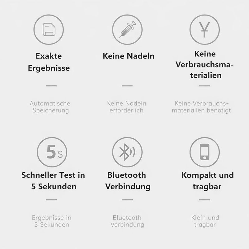 Schluss mit invasiven und risikoreichen Blutzuckermessungen! Messen Sie Ihren Blutzucker sicher und vermeiden Sie dabei das Risiko von Kreuzinfektionen oder Fingerstichen.
